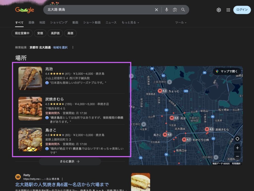 たとえば、「出町柳 焼肉」「京都 和牛 焼肉」と検索されたとき、マップに表示されたいなら、その言葉が実際にページや投稿に出てくるかをチェックしてみてください。