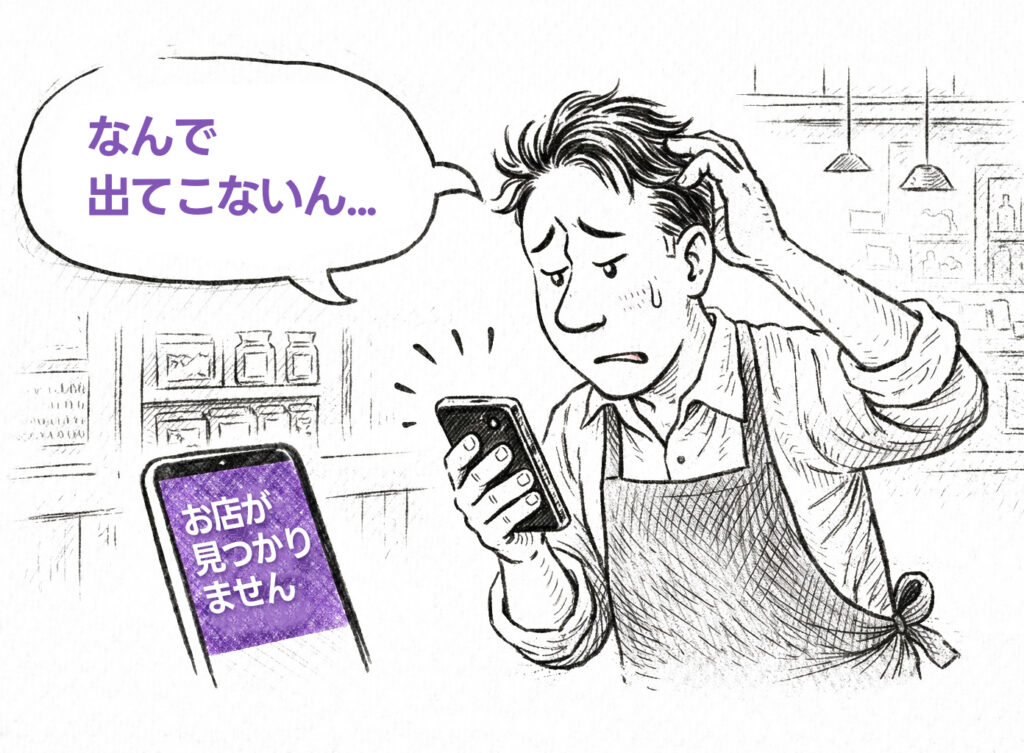 これが一番しんどいケース。お客さんが地図で調べても出てこない、検索しても出てこない。原因は大きく5つある。